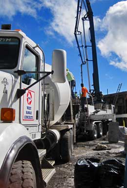 The Hi'ilani EcoHouse is completely built with SCIP, including multiple cantilevered roofs. The thin concrete skins poured for the roofs required precisely timed concrete delivery. West Hawaii Concrete consistently met the challenges associated with this one-of-a-kind project.